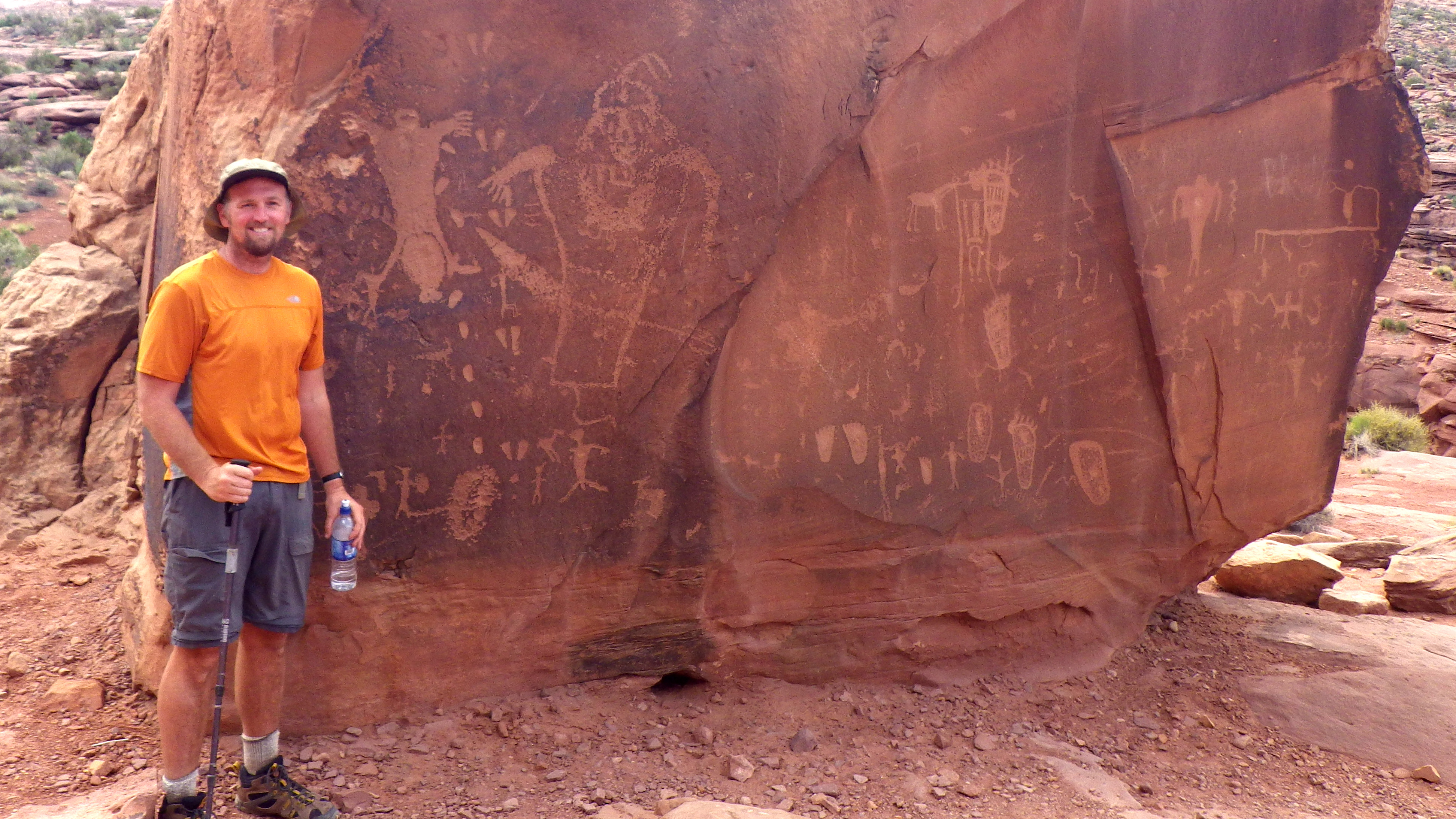 Despite the throngs of people, the walk down and out was pleasant. The stretch past Hunter’s Canyon and the switchback has plenty of fine views and later I stopped at the “birthing scene” — a cool petroglyph that I’d never seen.