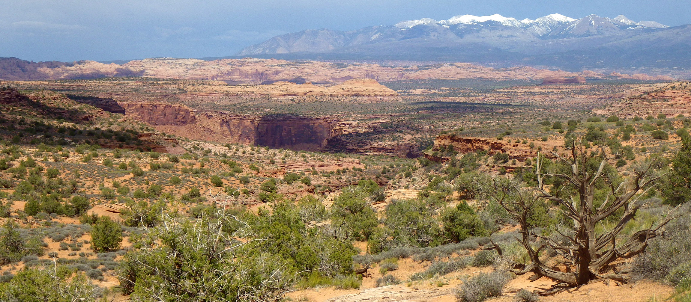 Up on top I made my way to a 4×4 road that I’d walked before. I’d rather walked along the more-scenic rim which I’d also done before, but I wanted to make up some time and get across the mesa as a storm looked to me moving in. About an hour later I connected to the main gravel road and was headed to the Hatch Campground where I wanted to refill my water. Before I got there though… water came to me in the form of another storm. I made a temp shelter and hung out while be biggest part of the storm passed by. Walking again the smell of rain on the sage/juniper was incredible. It was a cold rain too — I expected to see snow once the storm moved off of the La Sals.