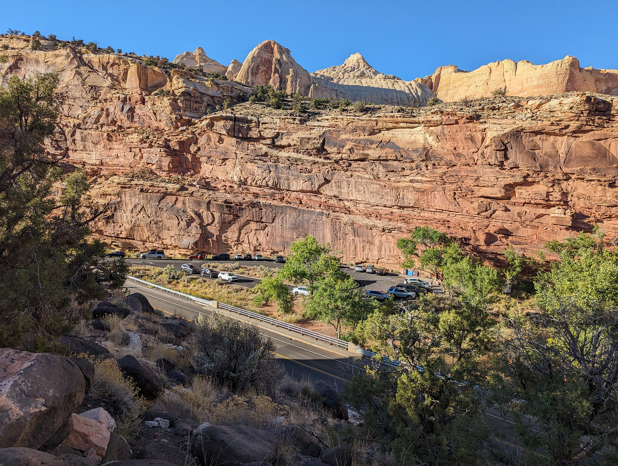 looking down on Hickman Bridge parking