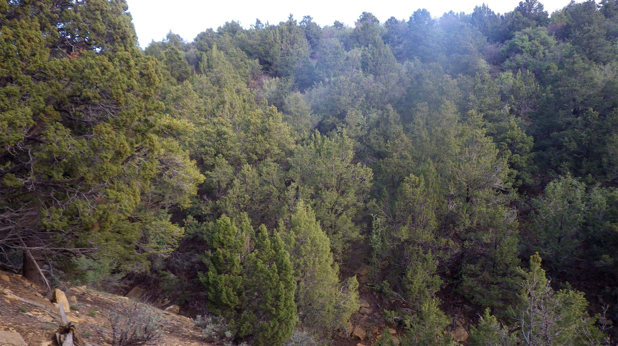 Forested area descending top branch