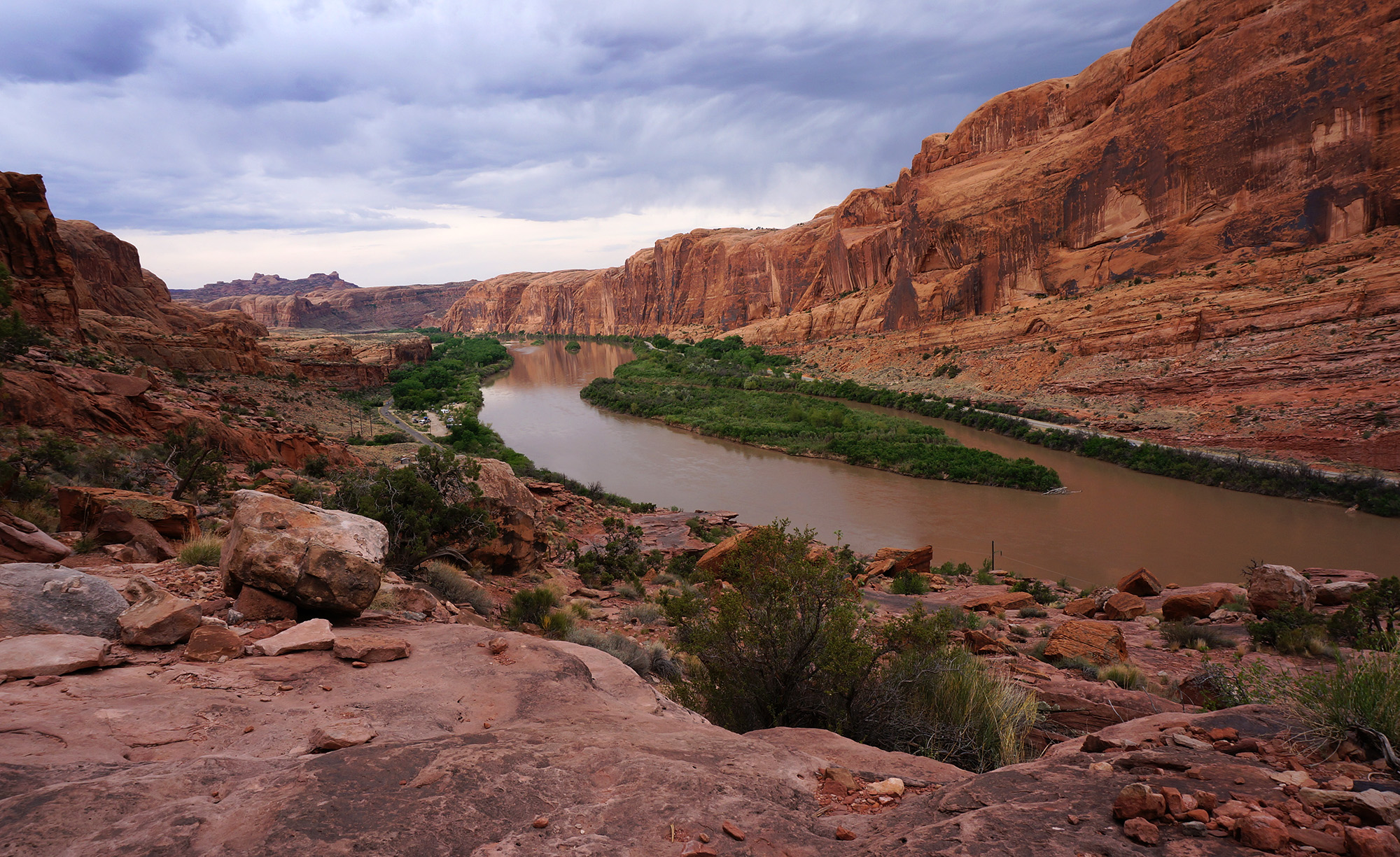 climbing the Moab Rim Trail